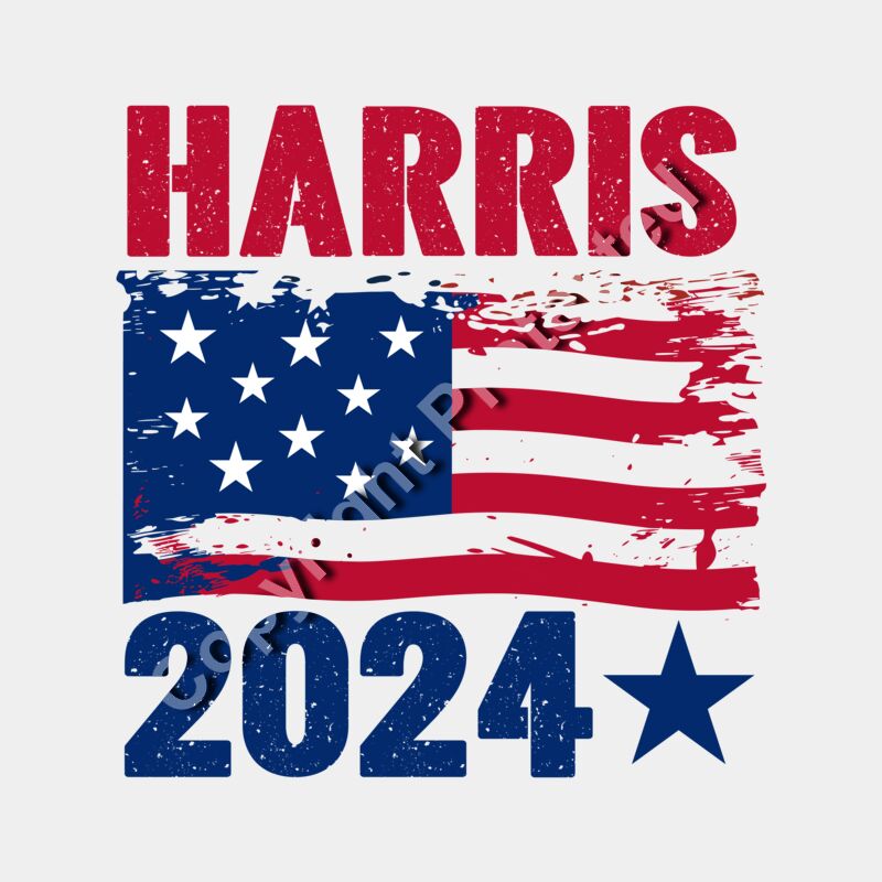 Kamala Harris 2024 campaign American flag graphic red blue stars stripes text design
