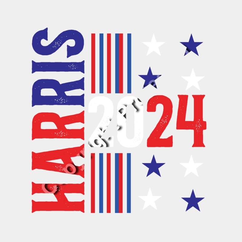 Kamala Harris 2024 campaign graphic with bold red white and blue colors stars and stripes
