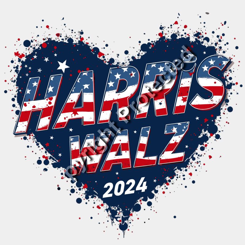 Kamala Harris 2024 campaign heart graphic with red white and blue colors stars and celebrato
