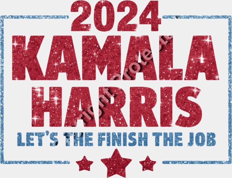 Kamala Harris 2024 campaign sparkling text with stars and patriotic colors kamala harris 2024