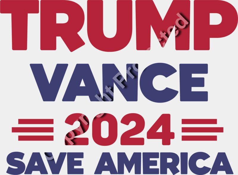 Trump 2024 campaign graphic featuring Vance and the slogan Save America in bold colors