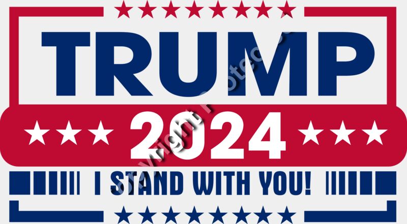 Trump 2024 campaign graphic featuring bold text stars and patriotic colors