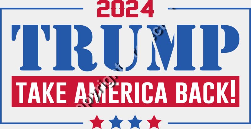 Trump 2024 campaign slogan with bold typography and patriotic colors featuring Take America Bac