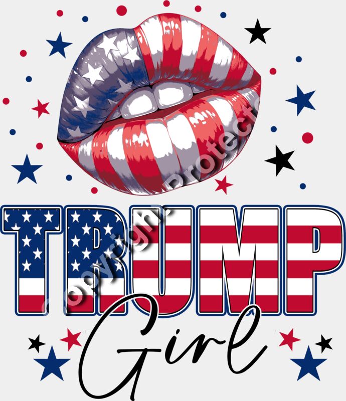 Trump 2024 patriotic design with red white and blue lips and bold text