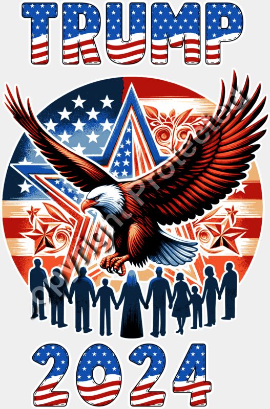 Trump 2024 patriotic eagle design with crowd and stars and stripes theme
