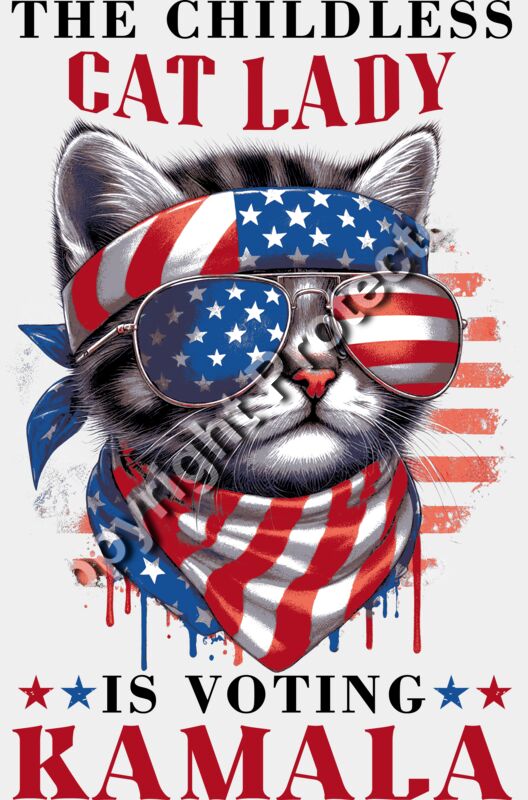 cat lady kamala harris 2024 election american flag cat artwork