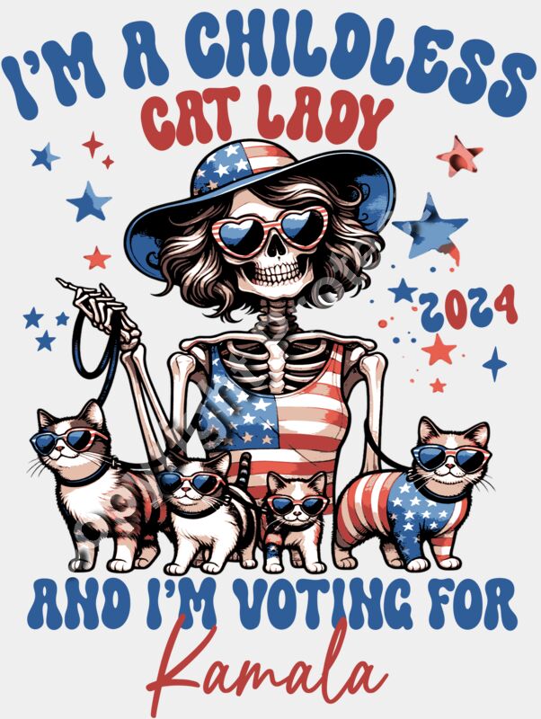 childless cat lady kamala harris 2024 election skeleton cats american flag